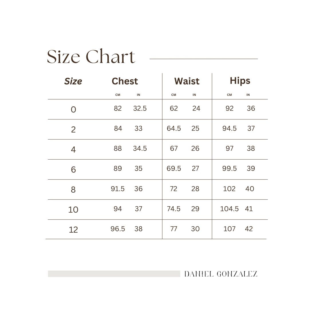 Still unsure? We’re happy to help. Email us at info@danielgonzalezdesigns.com with any sizing questions.